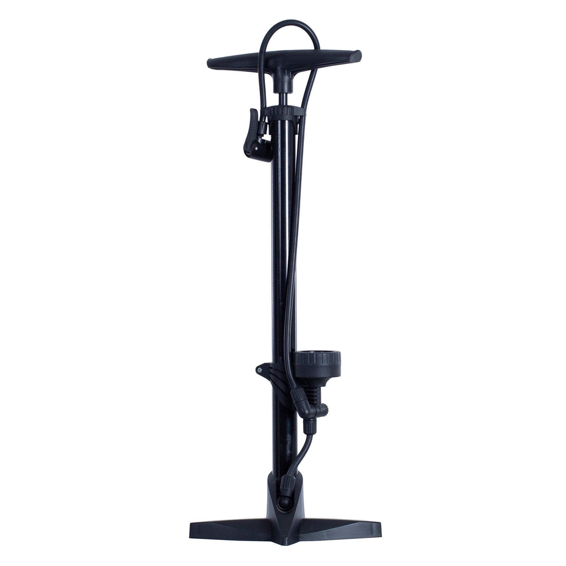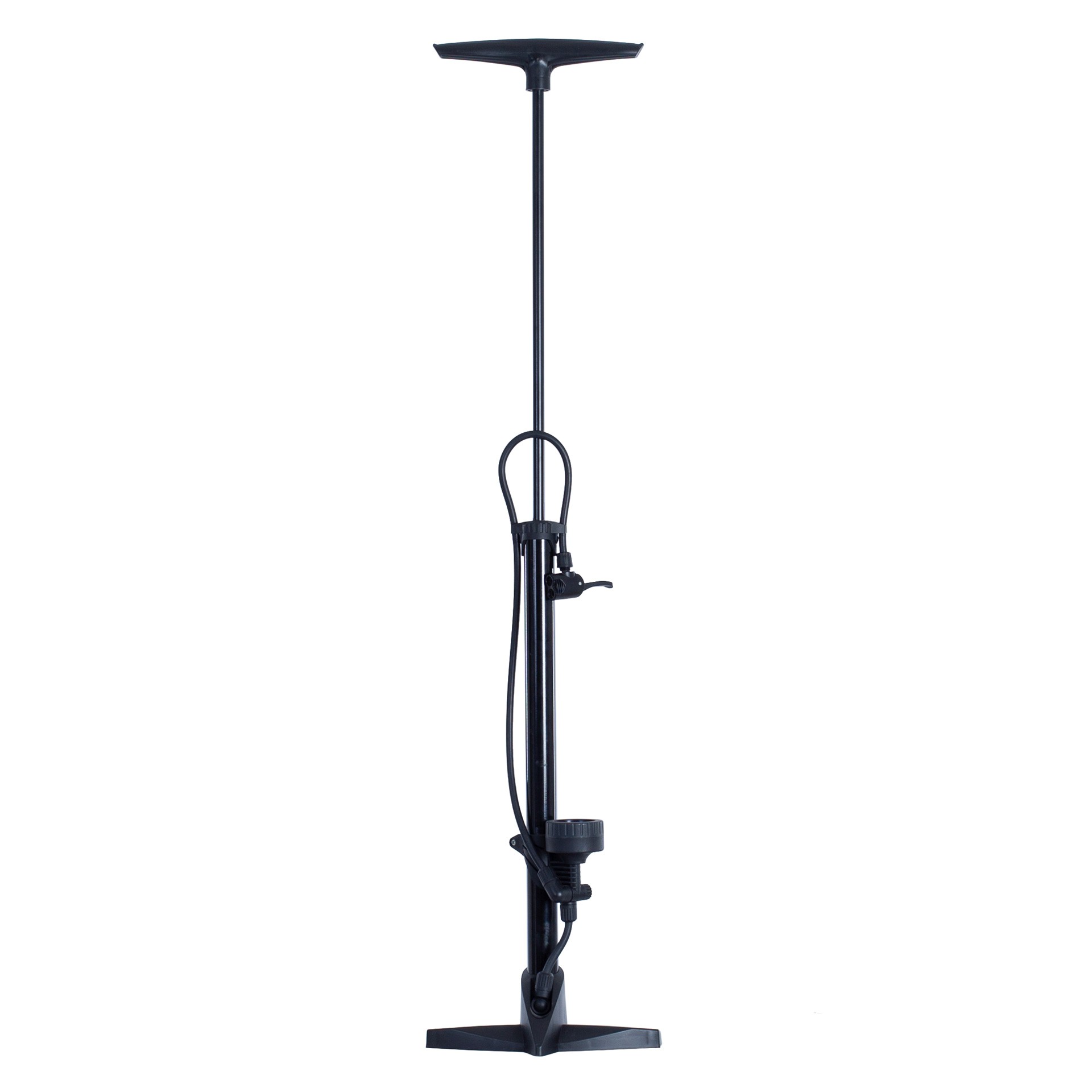 Bomba de pie estable que incluye manómetro en la parte inferior del mismo para ver la presión que se desea alcanzar.