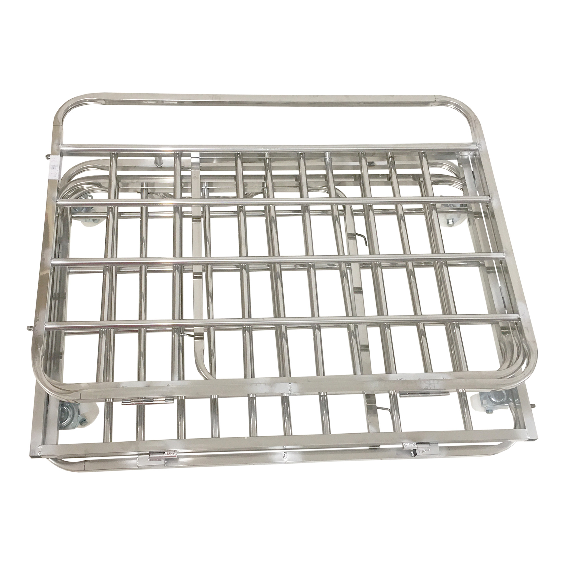 Carro con estructura plegable. Cuenta con ruedas para su transporte. Se puede plegar. Capacidad: 30/35 balones según deporte. Distancia entre barrotes: 10,5cm aprox. Medidas: 80x90x90cm.