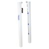 Juego de postes fabricados en acero de sección redonda 80mm. Diseñados para anclar a una base metálica trasladable provista de 2 ruedas de nylon fijas. Dicha base de medidas 80x60cm y fabricada en tubo de acero de sección 40x40x2mm, permite la colocación su parte posterior de un cajón de contrapeso para evitar su vuelco. El peso aproximado de contrapeso debería ser de unos 60/80kg. Incluye carraca tensora para poder tensar el cable de la red que se quiera colocar.