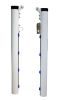 Juego de postes fabricados en aluminio nervado de sección redonda de 90mm. Diseñados para anclar a una base metálica trasladable provista de 2 ruedas de nylon fijas. Dicha base de medidas 80x60cm y fabricada en tubo de acero de sección 40x40x2mm, permite la colocación su parte posterior de un cajón de contrapeso para evitar su vuelco. El peso aproximado de contrapeso debería ser de unos 60/80kg. Incluye carraca tensora para poder tensar el cable de la red que se quiera colocar.